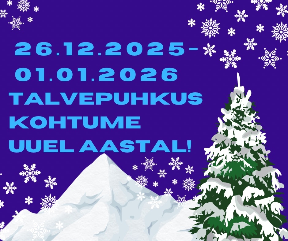 26.12.2025-01.01.2026 viibime talvepuhkusel.Rahulikku jõuluaega ja meeleolukat aastavahetust!